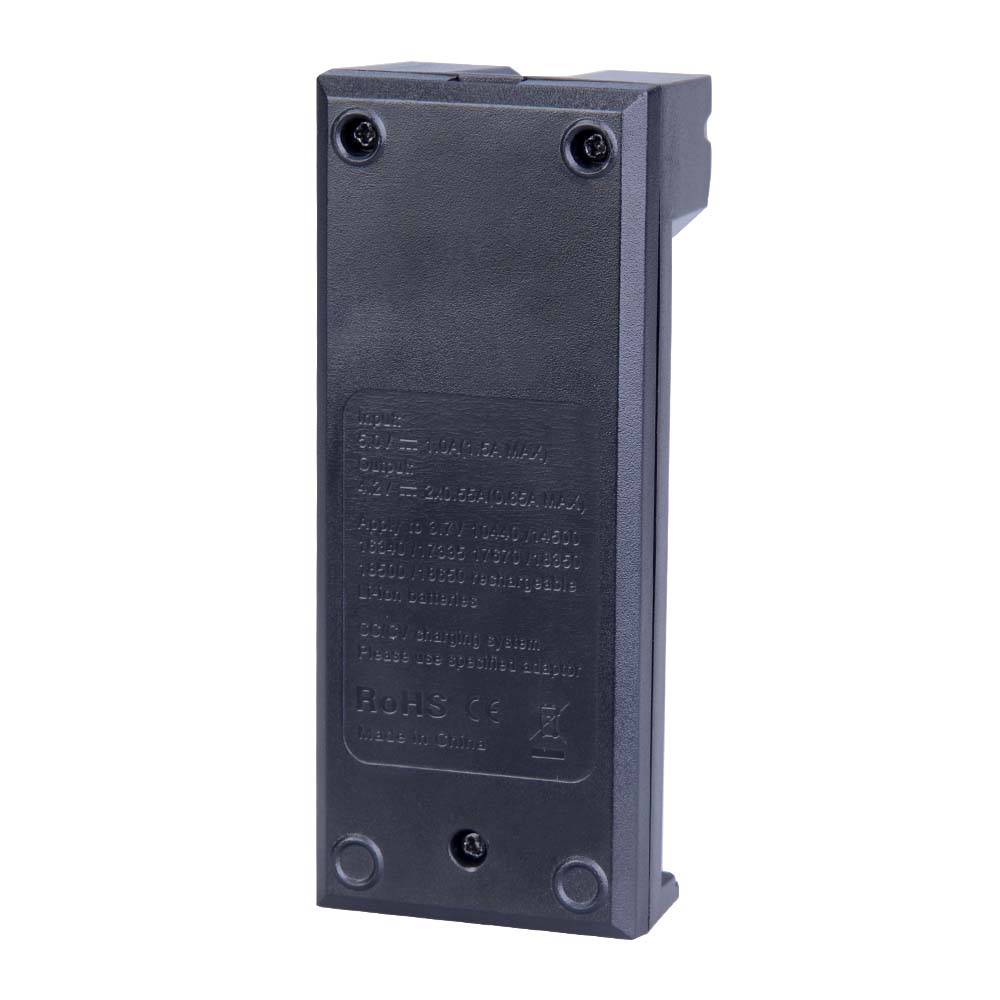 • Dos ranuras de carga independientes, pueden cargar dos baterías de iones de litio recargables de 3,7 V 10440/14500/16340/17335 17670/18350/18500/18650 a la vez;