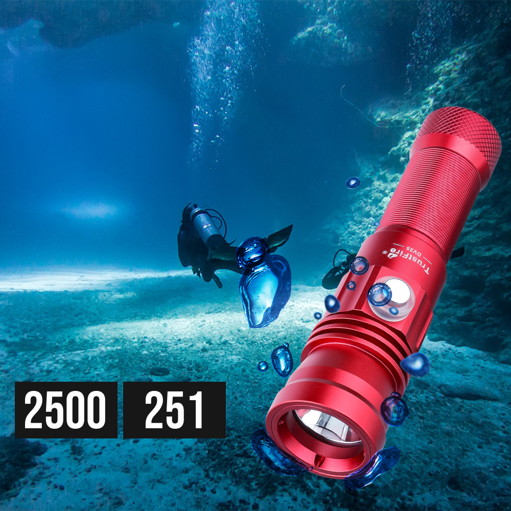 DV25 es una pequeña linterna de buceo con una profundidad máxima de 251 metros, una luminosidad máxima de 2500 lúmenes y un alcance máximo de 477 metros.