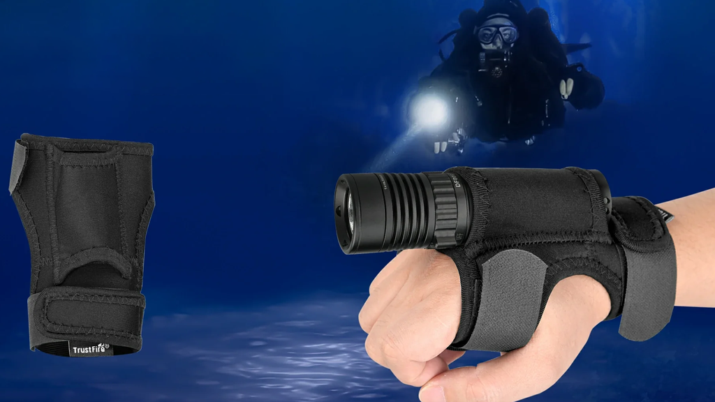 La linterna se puede fijar firmemente en la muñeca para evitar que se caiga y caiga al agua.