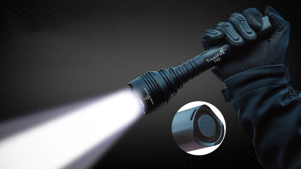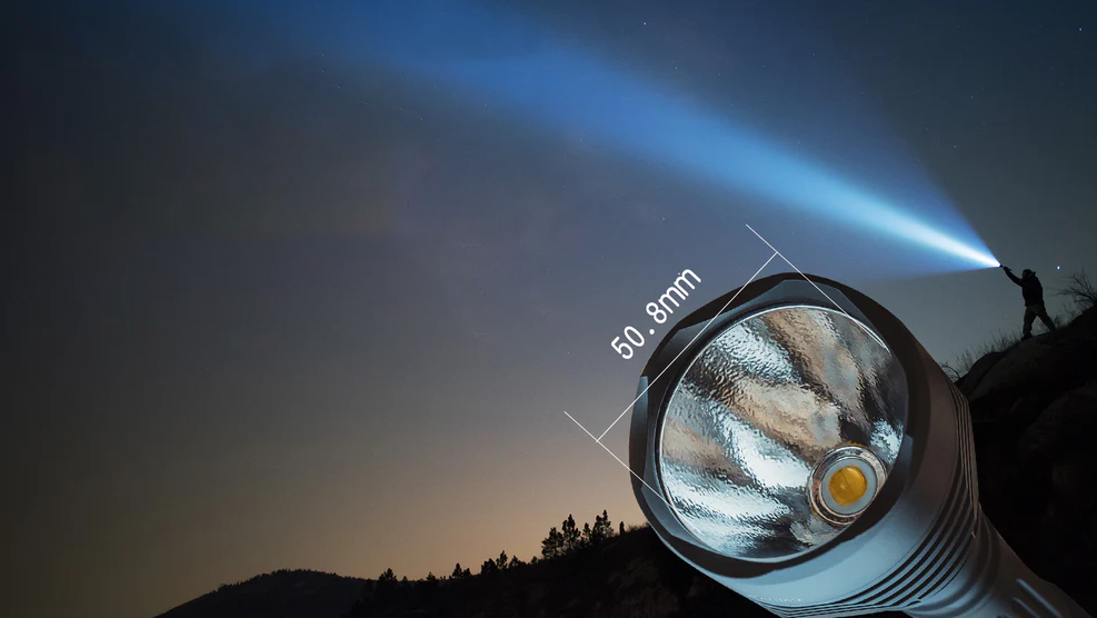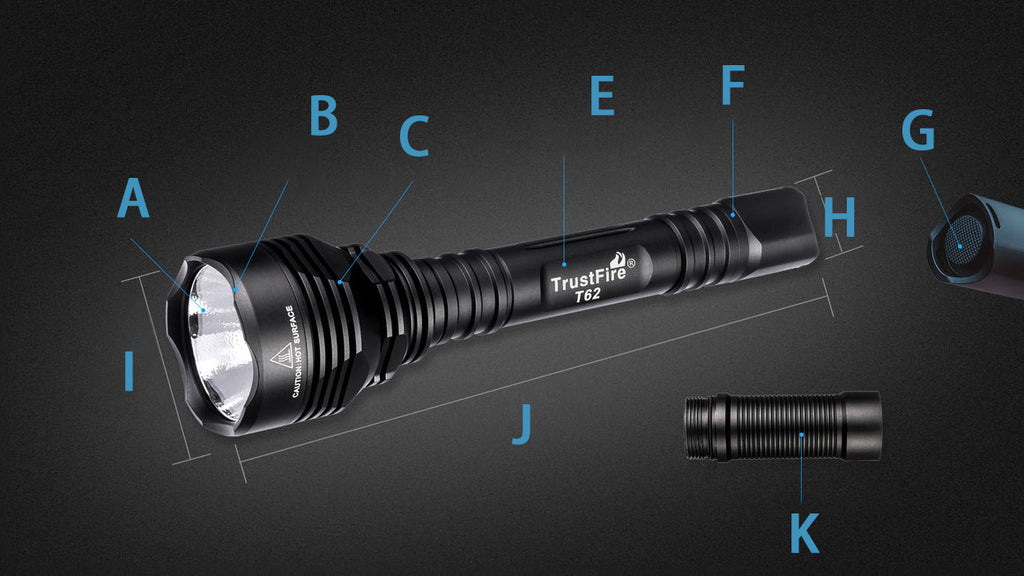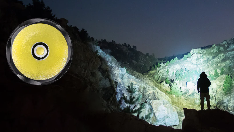 Viene con LED CREE XHP70 CWLED alimentados por 2 o 3 baterías 18650 con un rango de salida de 190 a 3600 lúmenes. Cuenta con un interruptor trasero fácil de usar que permite a los usuarios encender, apagar y encender, estroboscópico y apagado presionando el interruptor trasero con un orificio para cordón.
