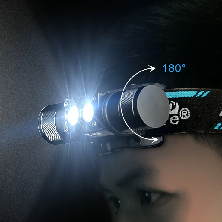 Soporte de silicona altamente elástico y agradable para la piel, ajuste libre de 180° del ángulo de iluminación, las luces altas y bajas se pueden controlar con una mano, con un rango de iluminación más amplio