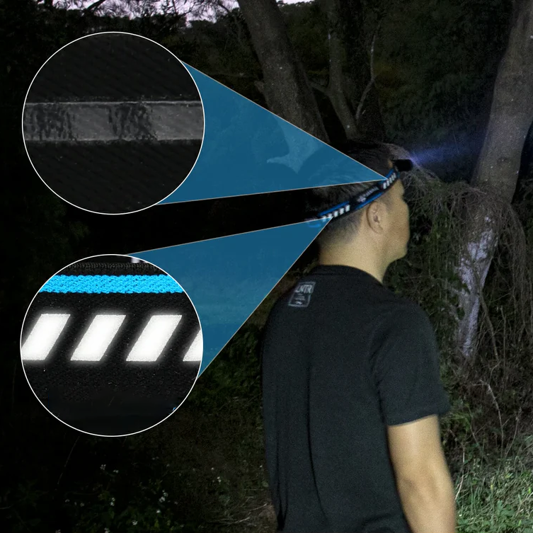 El H5R está equipado con una correa reflectante que absorbe el sudor y es cómoda de llevar. Tiene funciones reflectantes y que absorben el sudor y se puede usar de forma segura para correr, caminar, escalar, etc. por la noche. También puede evitar eficazmente que el sudor de la frente fluya hacia los ojos.
